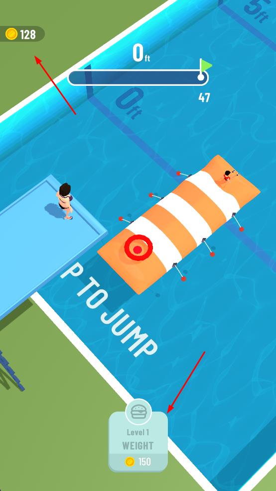 1、操控角色在泳池場景中進(jìn)行跳躍,角色可以是穿著比基尼的女性或穿著運(yùn)動(dòng)服的男性。