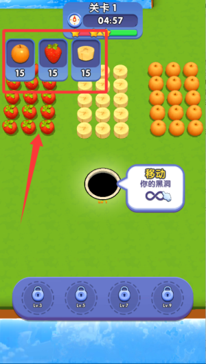 3、每天解鎖限定內(nèi)容,嘗試不同水果種類的吞噬效果,選擇最優(yōu)方案過關(guān)。