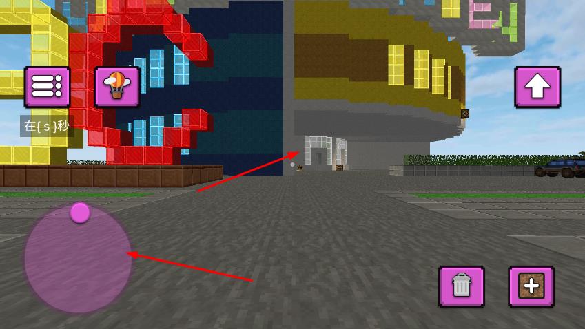 2、左側(cè)是虛擬搖桿,用于控制角色的移動(dòng)方向,通過(guò)滑動(dòng)虛擬搖桿,操控角色在像素風(fēng)格的場(chǎng)景中移動(dòng),探索不同的區(qū)域。