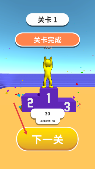 3、關(guān)卡完成后,點(diǎn)擊下一關(guān),進(jìn)入新挑戰(zhàn),繼續(xù)提升投籃技巧,沖擊更高成績(jī)。