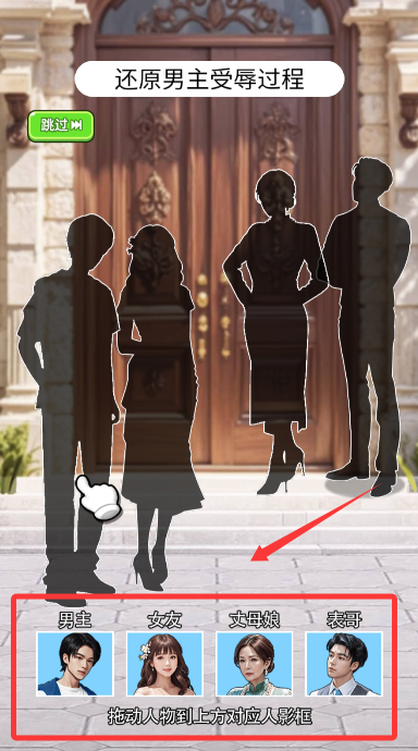 1、進(jìn)入還原角色劇情中,將底部人物頭像拖拽至頂部對應(yīng)的位置完成配對。