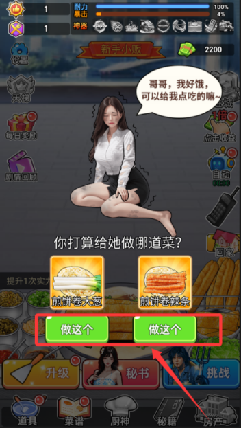 3、遇到顧客點(diǎn)單時,從兩種特色美食中選擇一種進(jìn)行烹飪制作。