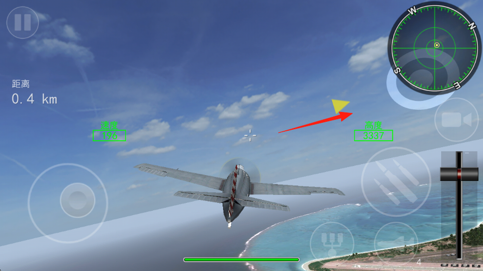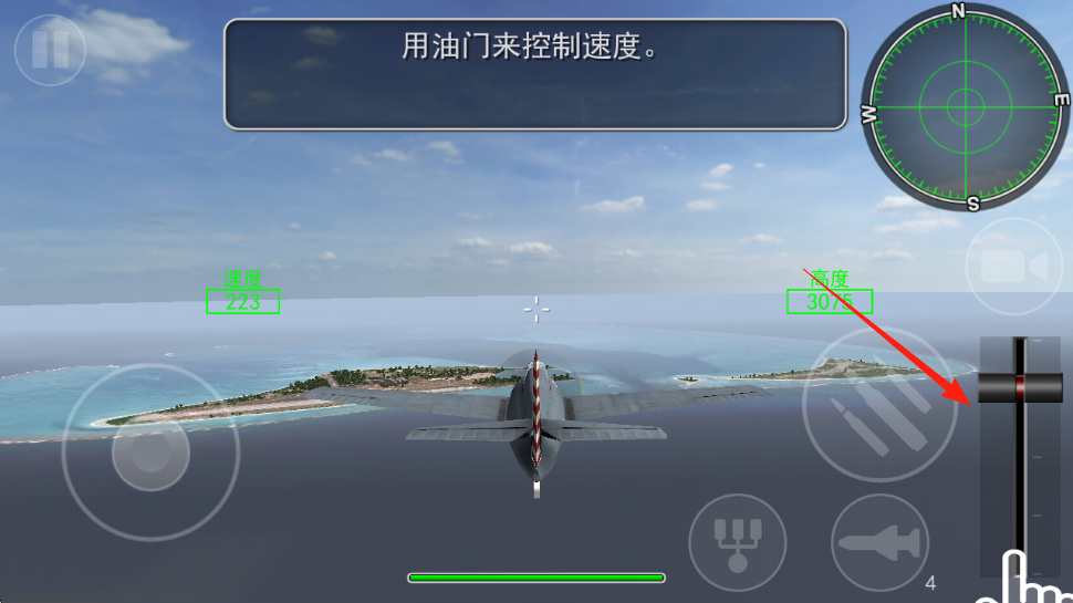 1、進(jìn)入游戲選訓(xùn)練任務(wù)進(jìn)入,用右側(cè)油門滑桿調(diào)節(jié)速度,左側(cè)搖桿控制飛機(jī)轉(zhuǎn)向、升降。