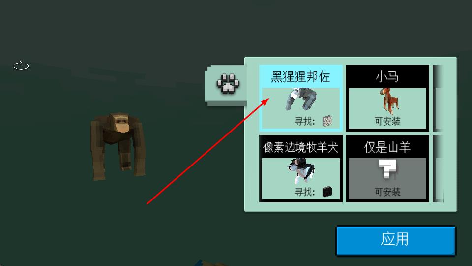 1、下載完成進入游戲界面,在生物選擇欄點擊黑猩猩邦佐,按提示尋找對應(yīng)物品,完成生物獲取流程。