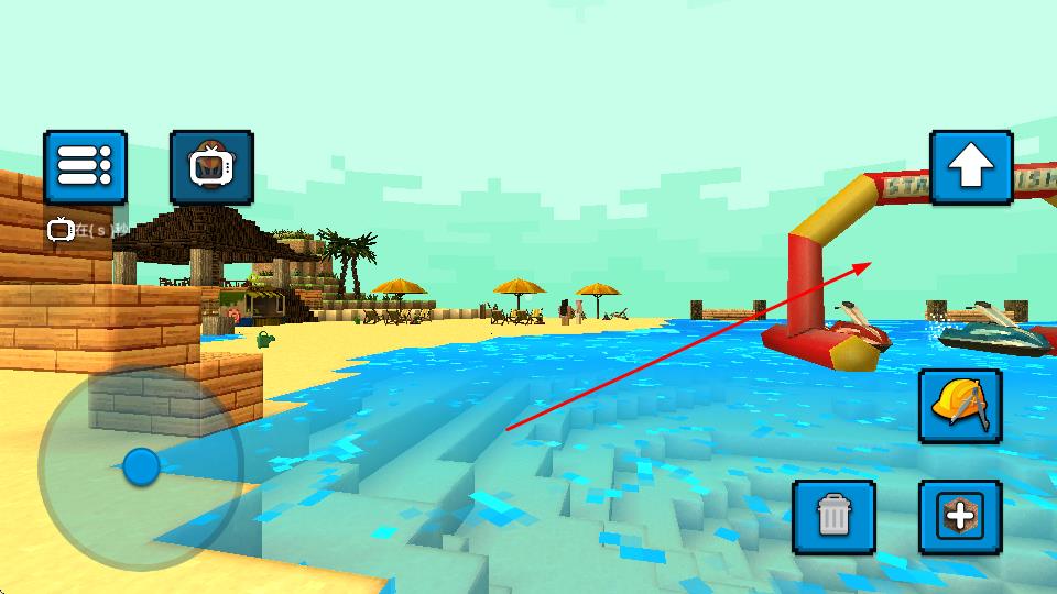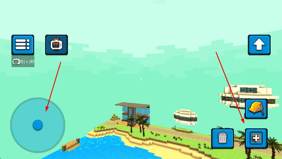 2、操控左側(cè)虛擬搖桿移動角色,點擊右側(cè)工具按鈕,可使用工具進行建造、破壞等操作。