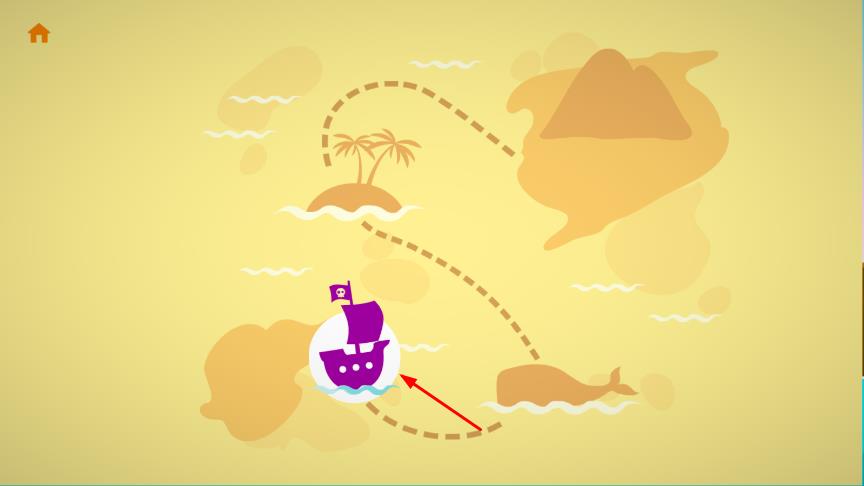 1、進入界面,從木桶里找到海盜,展示一張帶有航線等元素的地圖,地圖上有一個紫色海盜船標識,點擊該標識,開始游戲。