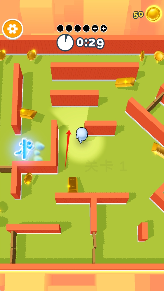 2、迷宮中操控角色移動,收集金幣,注意時(shí)間限制,避開障礙,推進(jìn)關(guān)卡進(jìn)程,滑動移動人物。