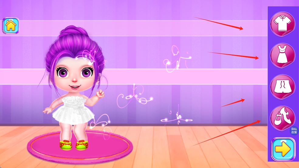 2、互動反饋生動:設計發(fā)型時公主會根據(jù)效果做出不同表情,搭配滿意的服飾會露出微笑,這種即時互動讓造型過程更具代入感,仿佛真實與公主互動。