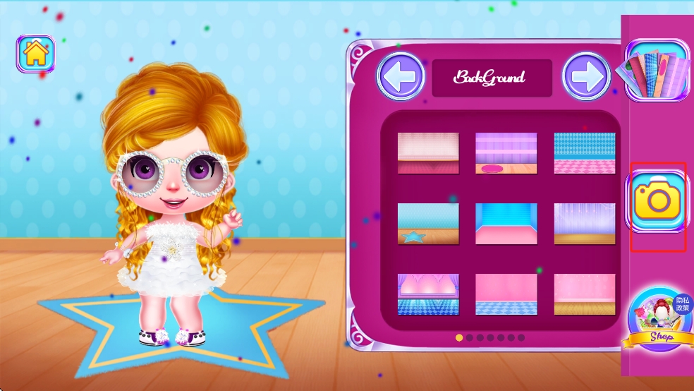 3、換裝后完成切換背景界面,選喜歡的背景模板,點擊相機圖標可保存裝扮成果,完成后可繼續(xù)探索新搭配。