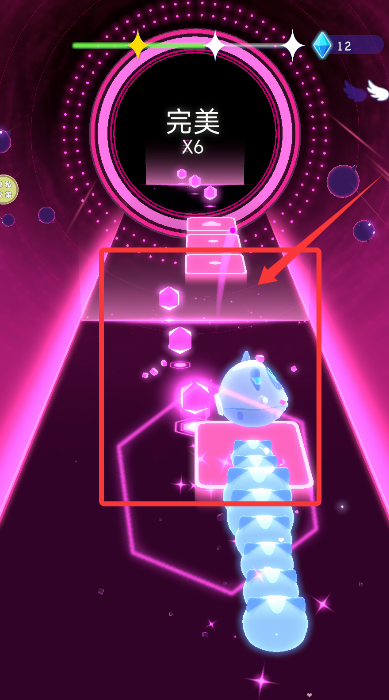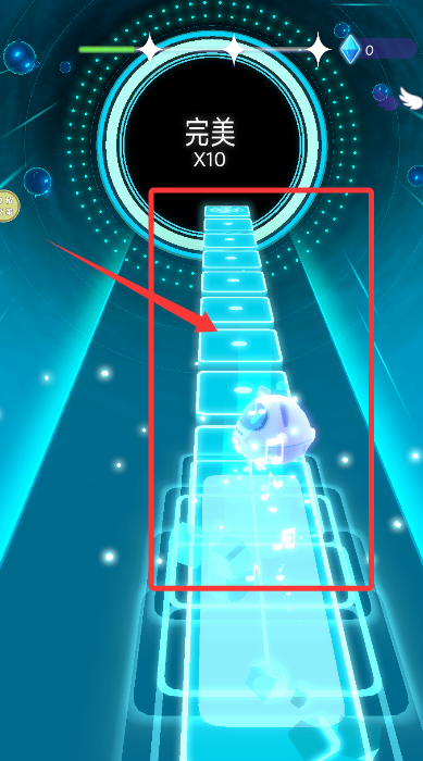 3、根據旋律節(jié)拍,讓角色精準踩踏接連出現的音符,獲取最高評分。