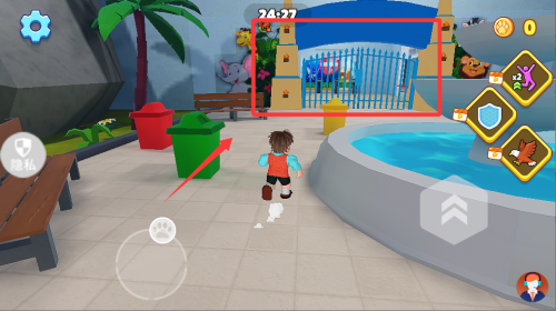3、后面會(huì)有動(dòng)物追你,注意看血條,被追上會(huì)掉血,及時(shí)用道具拖延或躲開,別讓血量太低,不然容易失敗。