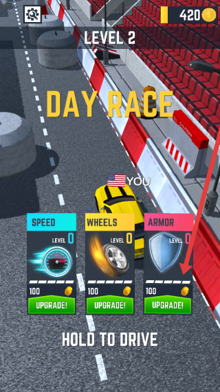 2、消耗金幣點擊ARMOR下方UPGRADE,升級賽車護甲,增強抗撞擊能力,應(yīng)對賽道的碰撞。