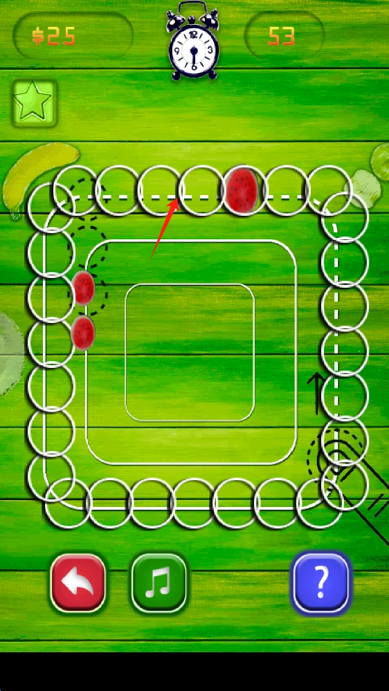 3、游戲中操控水果,在軌道上靈活移動,注意時間限制,避開障礙,完成關(guān)卡,滑動調(diào)整水果位置。