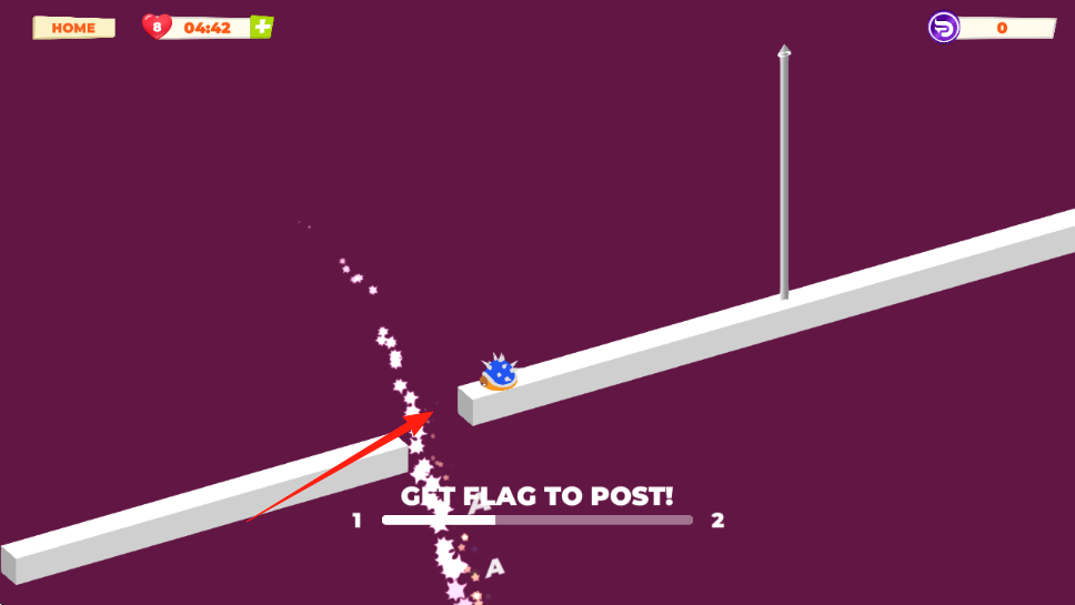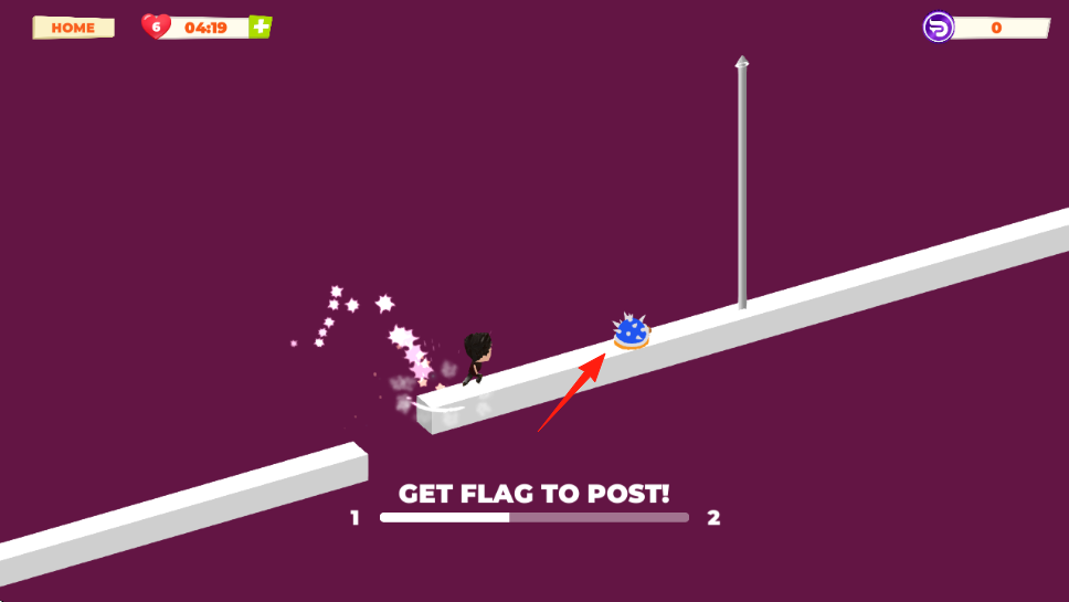 2、優(yōu)先收集藍(lán)色旗幟FLAG,靠近旗幟會自動獲取,集旗后向終點旗桿前進(jìn),注意避開尖刺等陷阱。
