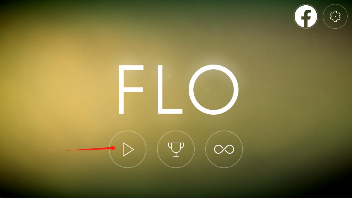 1、在FLO游戲啟動(dòng)界面,點(diǎn)擊播放按鈕,開啟獨(dú)特的游戲冒險(xiǎn),點(diǎn)擊按鈕開始游戲。