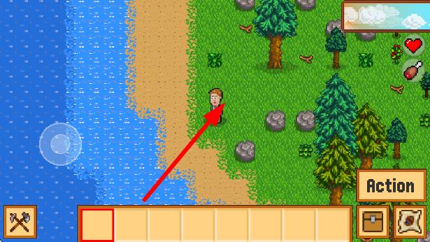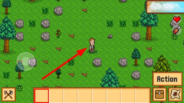 2、利用虛擬搖桿或點(diǎn)擊屏幕控制移動(dòng),靠近樹木、石頭,可采集資源,為后續(xù)建造、生存做準(zhǔn)備,使用工具互動(dòng)。