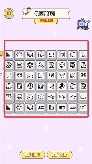 4、選擇好關(guān)卡后,進(jìn)入游玩,將所有文字連成梗即可過關(guān)。