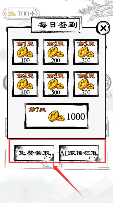 1、前往每日福利界面,可選擇普通領取或觀看視頻獲取雙倍金幣獎勵。