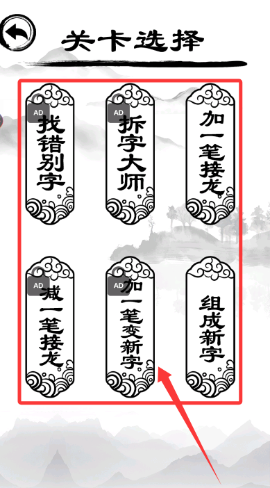 3、進入具體玩法后,挑選如"加一筆組字"這類特色關卡開始挑戰(zhàn)。