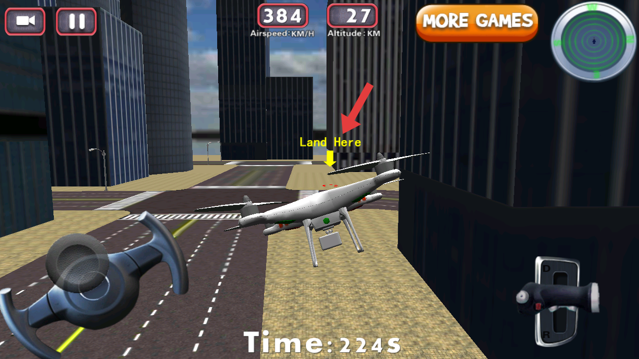 1、在操控無人機時,需要依據Land Here的提示,來調整飛行方向與高度,精準降落在指定區(qū)域。