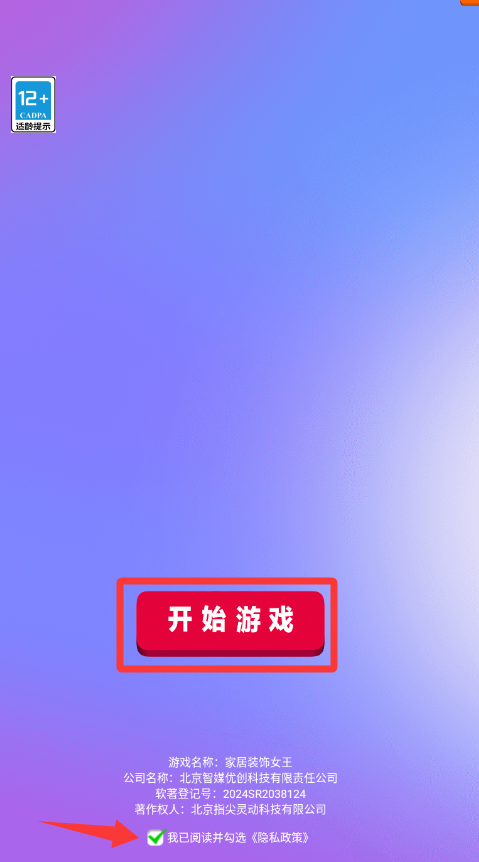 1、點擊紅色箭頭打√再點擊開始游戲。