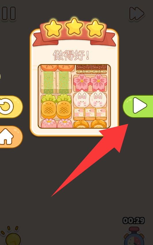 4、嘩,你好棒棒啊,點擊紅色箭頭哪里下一關(guān)。