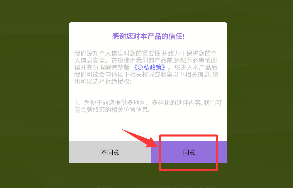 1、點(diǎn)擊紅色框框的同意并進(jìn)入游戲。