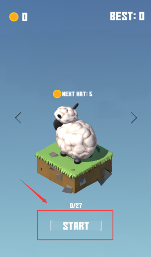 2、點(diǎn)擊紅框START按鈕,控制綿羊收集5頂帽子。