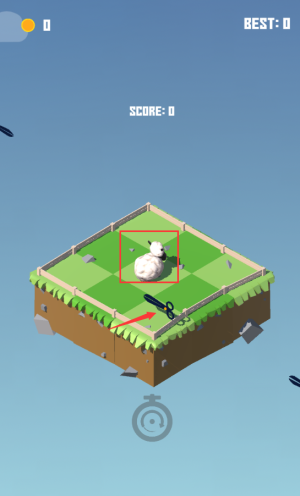 3、點(diǎn)擊紅框羊羊,避開(kāi)剪刀別被碰到。