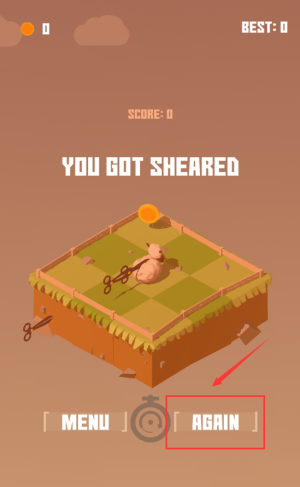 4、點(diǎn)擊紅框AGAIN按鈕,重新開(kāi)始游戲挑戰(zhàn)。