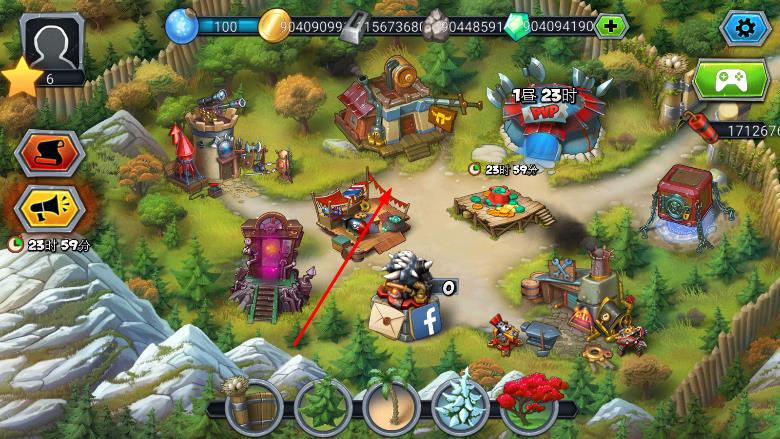 1、進入界面,看到充滿奇幻元素的場景,有各種建筑和角色,點擊行嗎第一個,進入關卡選擇界面。