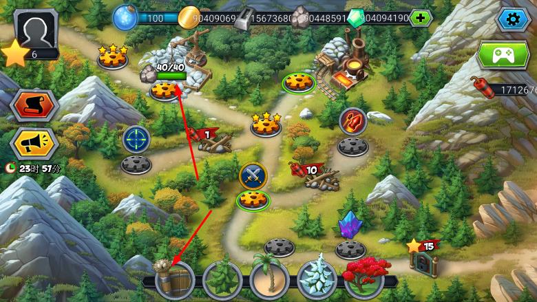 2、在關卡選擇界面,選擇要挑戰(zhàn)的關卡關卡1,點擊進入場景,上面位置顯示擁有的資源數(shù)量,左側顯示角色信息,右側顯示各種功能按鈕。