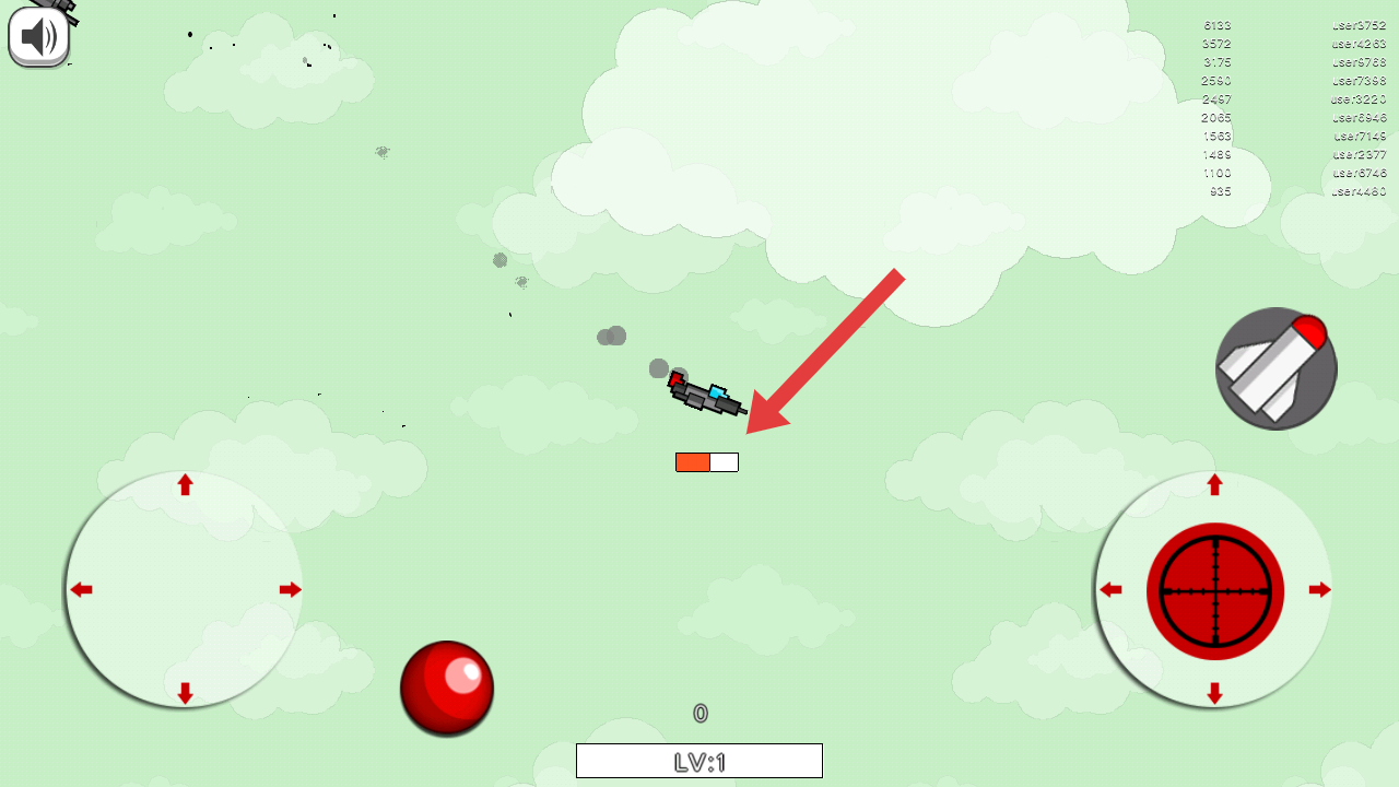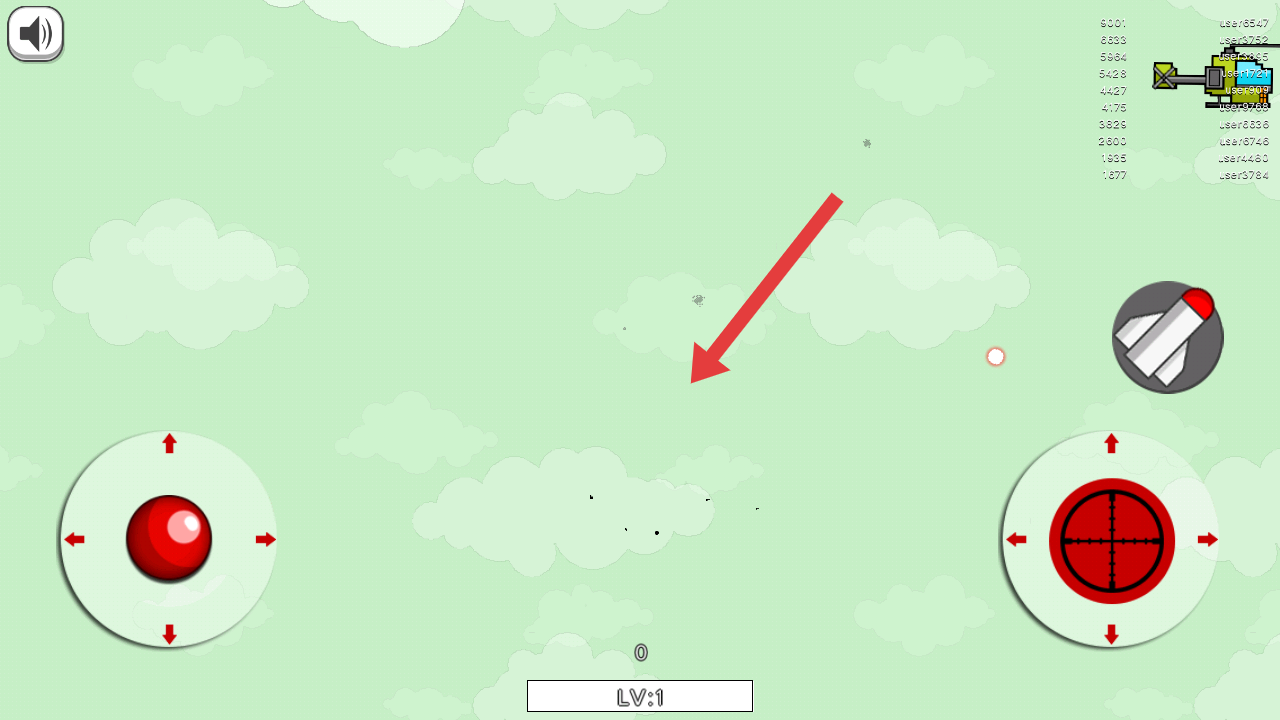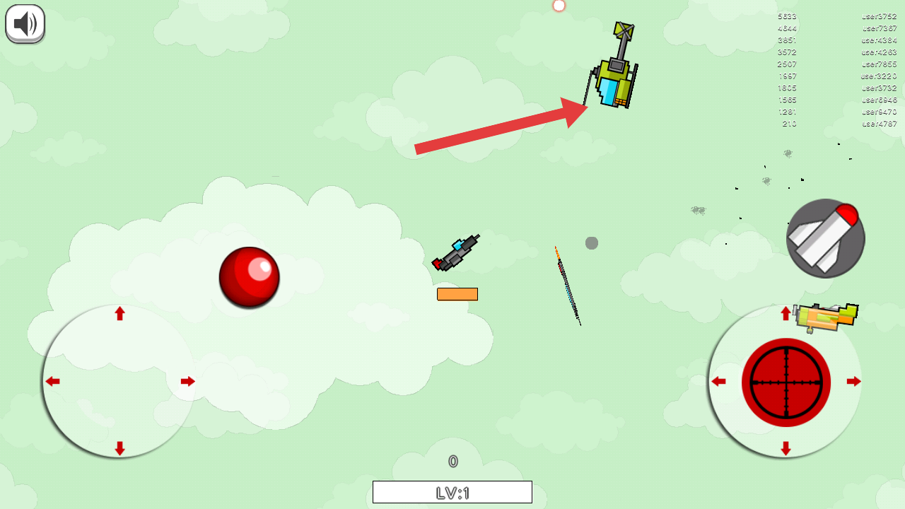 1、開局進(jìn)入游戲,操控自己的飛機(jī)瞄準(zhǔn)箭頭指向的敵方直升機(jī),摧毀除自己以外的全部目標(biāo)。