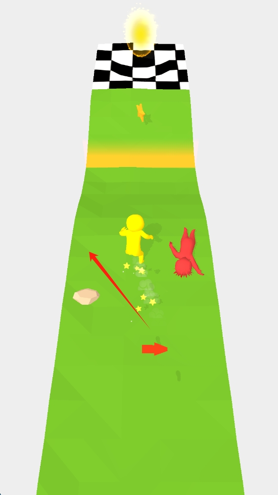 3、繼續(xù)奔跑,朝著黑白格終點(diǎn)線前進(jìn),注意避開障礙物,爭(zhēng)取順利到達(dá)終點(diǎn)向前滑動(dòng)移動(dòng)。