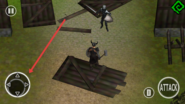3、在進(jìn)入到戰(zhàn)斗場(chǎng)景中,可以使用左下角方向操控按鈕,控制角色在地圖移動(dòng),與敵人展開對(duì)戰(zhàn)。