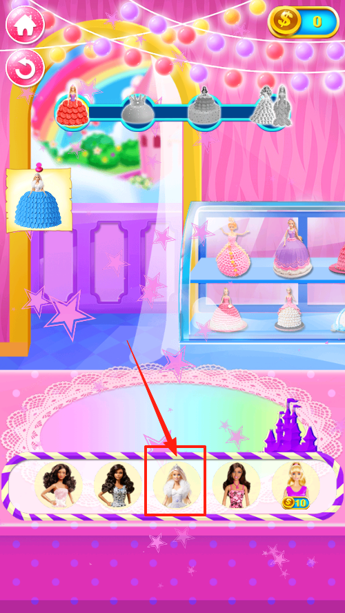 1、點(diǎn)擊下方角色選定制作對象,在角色欄中選中目標(biāo)娃娃,開啟蛋糕定制流程,推進(jìn)制作步驟。