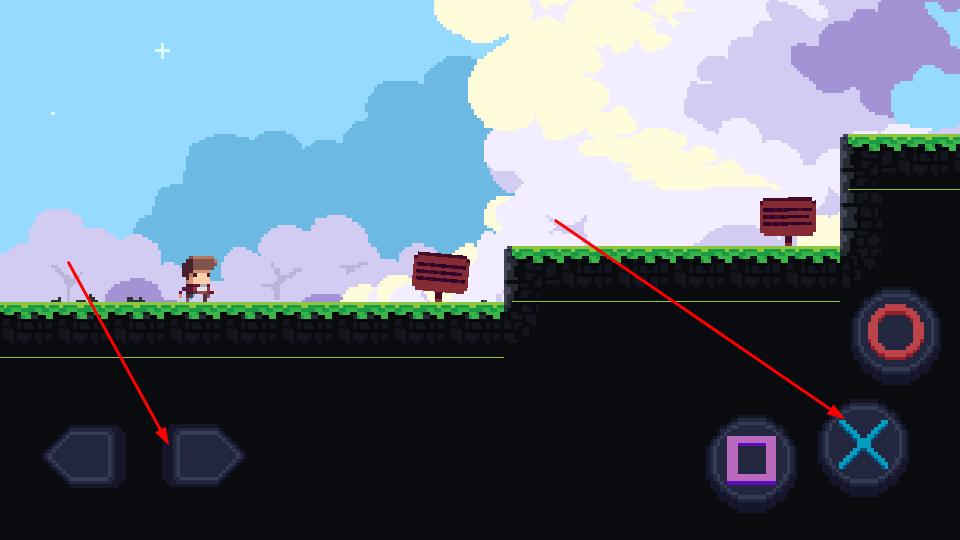 2、引導角色從初始草地場景出發(fā),遇地形落差如草地與石質(zhì)高地銜接處,點擊右側跳躍鍵,精準跨越障礙,探索隱藏路徑,避開陷阱區(qū)域。