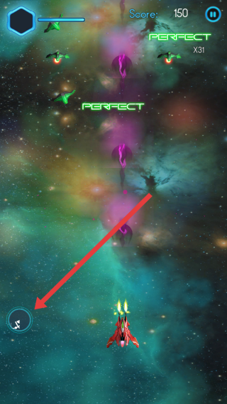3、當(dāng)敵人太多單純的炮火有些抵擋不住時(shí),點(diǎn)擊左下角技能圖標(biāo),釋放特殊攻擊,高效清剿敵機(jī)群。