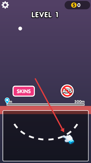 1、Level1界面,按手指提示劃白色虛線軌跡,發(fā)射飛行物,沿300m軌道啟程,借SKINS等準(zhǔn)備避障。