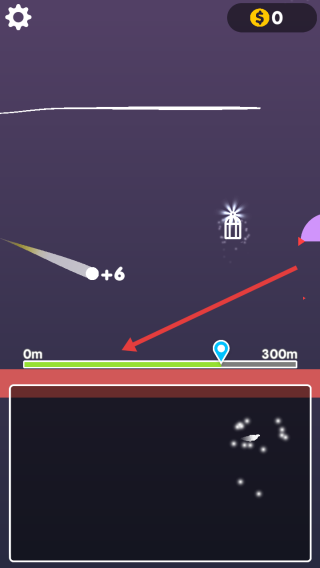 2、操控飛行物沿軌跡飛,拾取+6增益,避障礙,推進(jìn)綠色進(jìn)度條,朝300m終點(diǎn)沖刺爭(zhēng)通關(guān)。