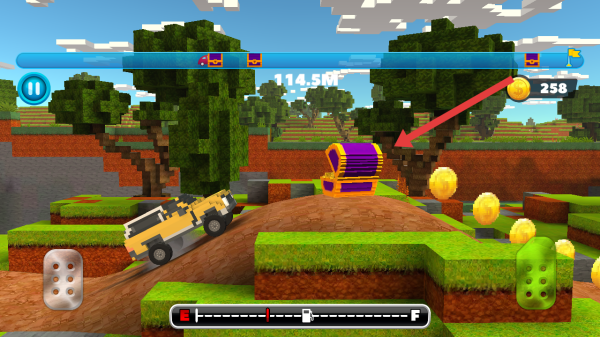 3、操控車輛駛向紫色寶箱,寶箱里面分布大量金幣,查看上方的地圖信息可知道這一關(guān)卡分布多少寶箱。