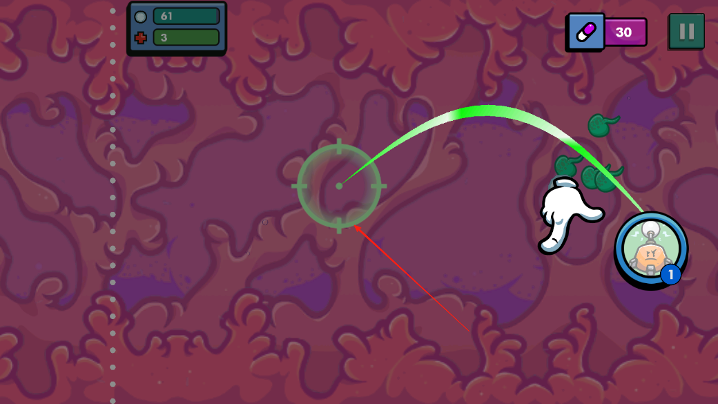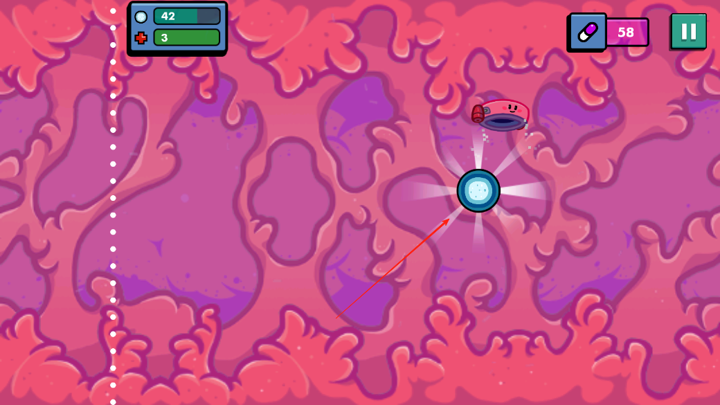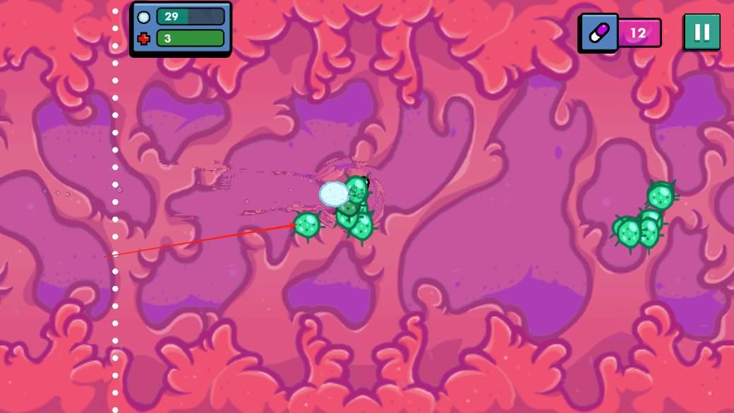 1、新手教學(xué)表示我們只需要點(diǎn)擊屏幕的左側(cè),發(fā)射白細(xì)胞阻擋不斷向前攻擊的病毒,對(duì)準(zhǔn)病毒發(fā)射一個(gè)白細(xì)胞解決一個(gè)病毒。