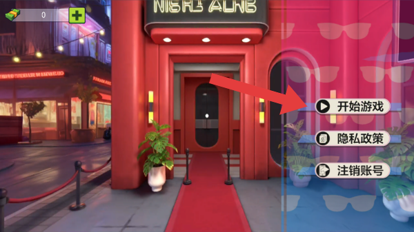 1、畫面呈現(xiàn)游戲場景入口,可點擊開始游戲進(jìn)入,也能查看隱私政策、進(jìn)行賬號注銷操作,左上角還有貨幣及添加按鈕。