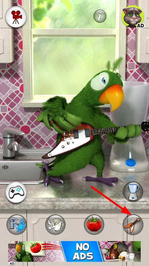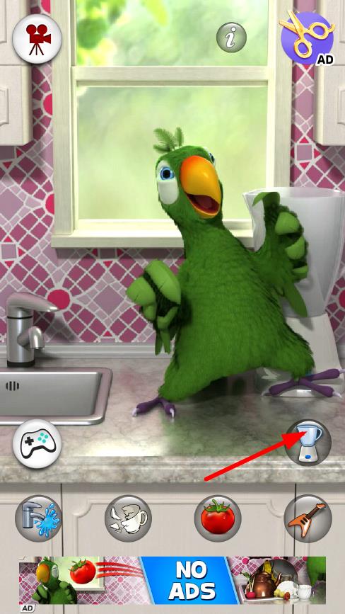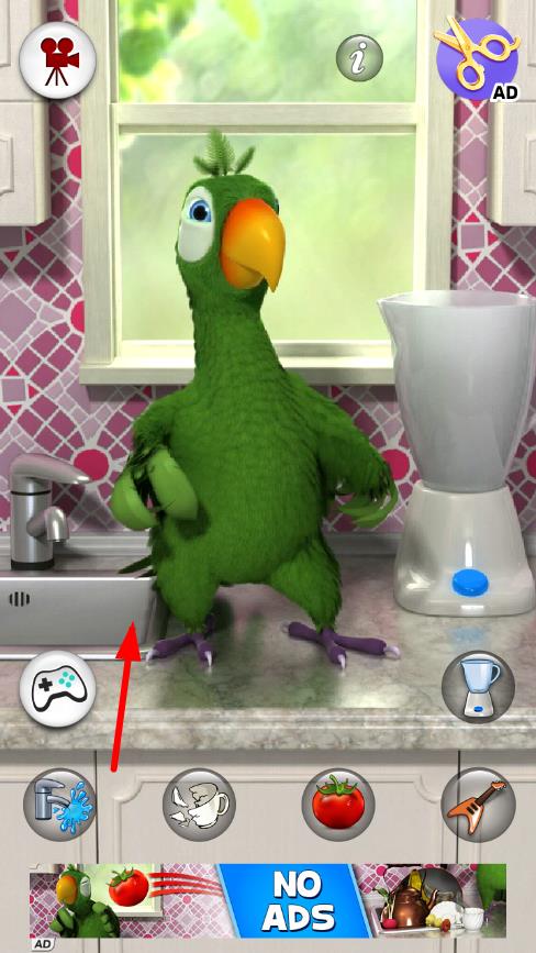 2、點擊屏幕上的互動按鈕,給鸚鵡洗澡、撓癢癢或喂食,觸發(fā)鸚鵡的不同反應與動作,解鎖更多互動場景。