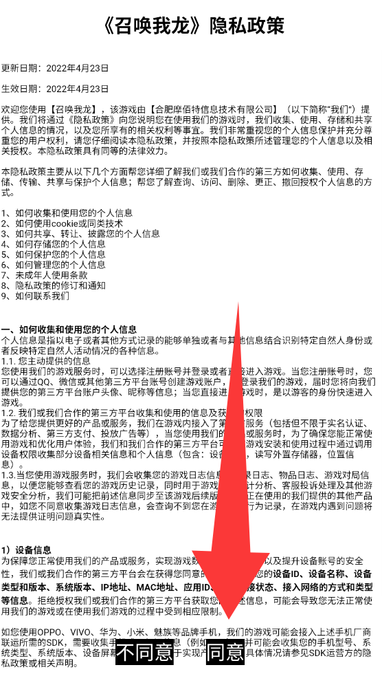 1、點擊召喚我龍隱私政策里的同意并進入。