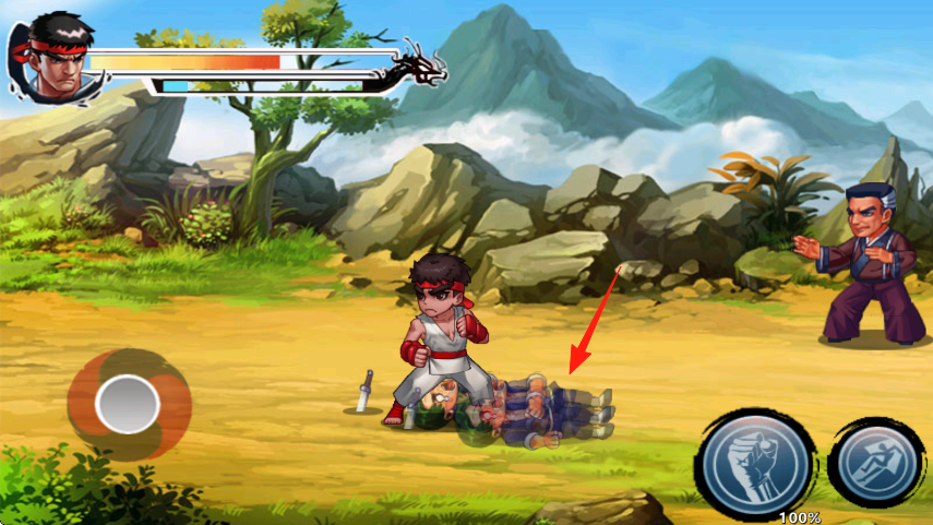 3、持續(xù)攻擊,將敵人擊倒紅箭頭指向倒地敵人,完成階段性戰(zhàn)斗,準(zhǔn)備應(yīng)對下一波敵人。