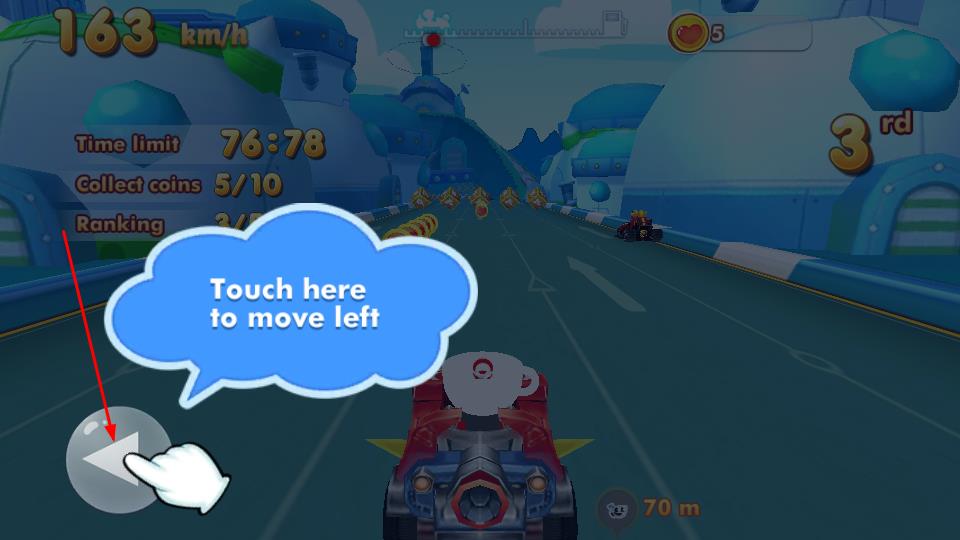 3、按照屏幕提示,點擊方向按鈕如左移按鍵操控賽車,靈活應對賽道行駛狀況。