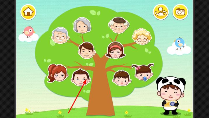 1、進入游戲,在主界面點擊粉色的開始按鈕,進入家庭樹界面后,點擊樹上不同的家庭成員頭像。