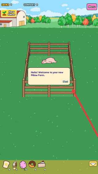 1、點(diǎn)擊圍欄旁的Next按鈕,跳過(guò)新手引導(dǎo)文字,進(jìn)入農(nóng)場(chǎng)實(shí)際操作階段,開(kāi)啟動(dòng)物喂養(yǎng)等玩法。