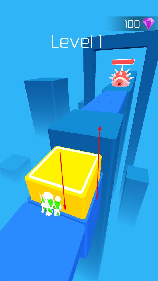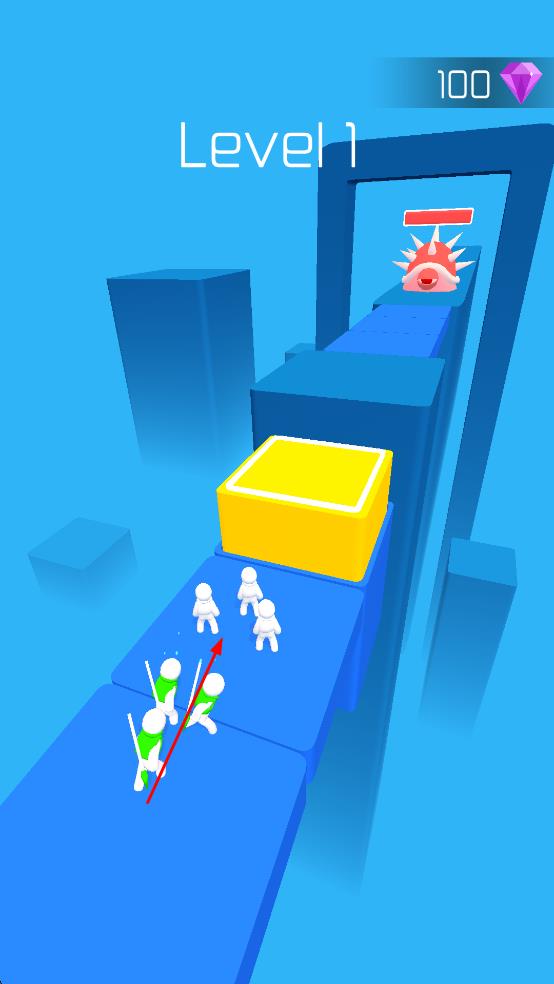1、進(jìn)入Level1關(guān)卡后,操控綠色小人隊(duì)伍前進(jìn),靠近黃色方塊并推動(dòng),為后續(xù)戰(zhàn)斗積累推進(jìn)優(yōu)勢(shì)。